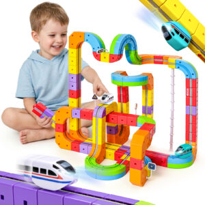- 【Simple Operation & Child-Friendly】These track car toys feature smooth, rounded edges and a “press-to-connect” design—simply align the interface and press to lock. For disassembly, a simple twist is all it takes. The vibrant colors quickly grab a child’s attention, while the intuitive controls allow even 3-year-olds to easily build and adjust the cube track train. This kids train set grows with your child, progressing from basic 2D loops to complex 3D tracks, serving as a true “growth partner” throughout their childhood