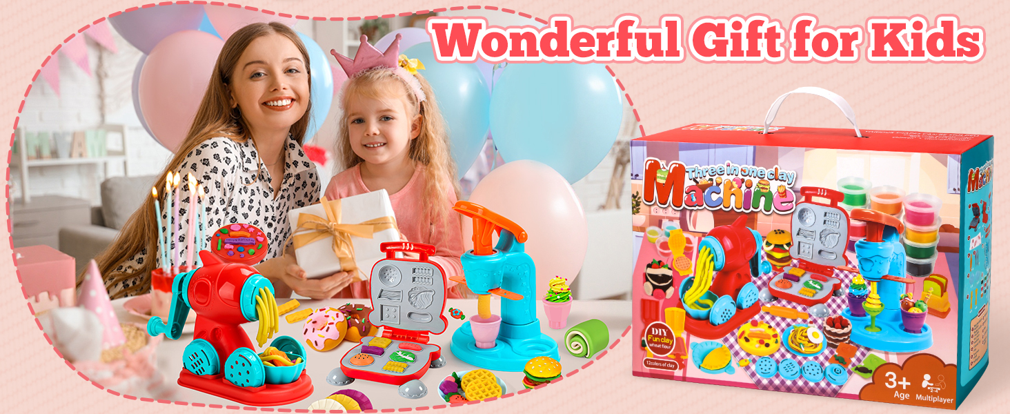 SOCBTNSO 3 in 1 Dough Sets for Kids Ages 2-4-8, Dough Tools Kit with Ice Cream Noodle Hamburger Maker Machine, Kitchen Creations Art Crafts Food Play Toys for Boys Girls Kids Toddlers Ages 3+