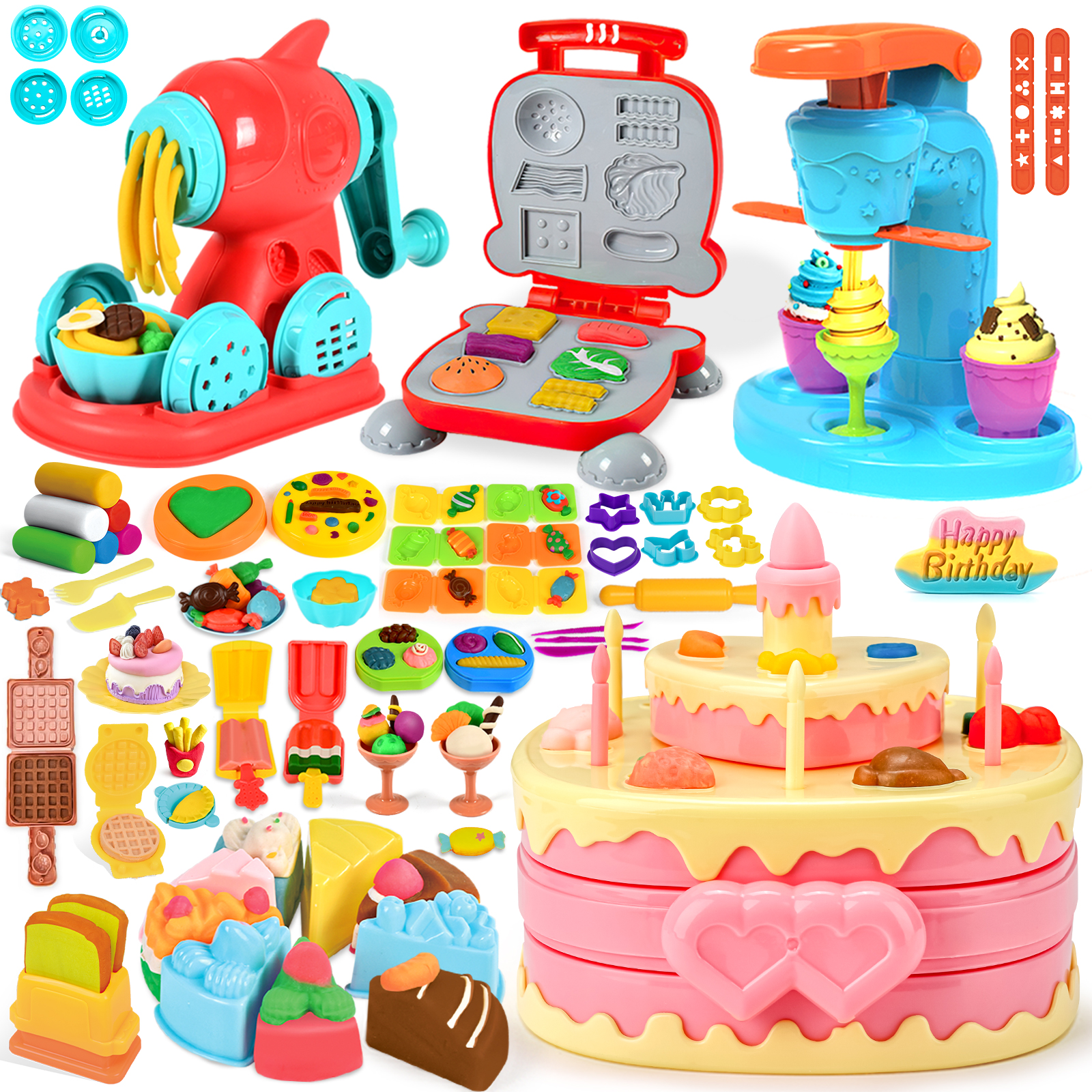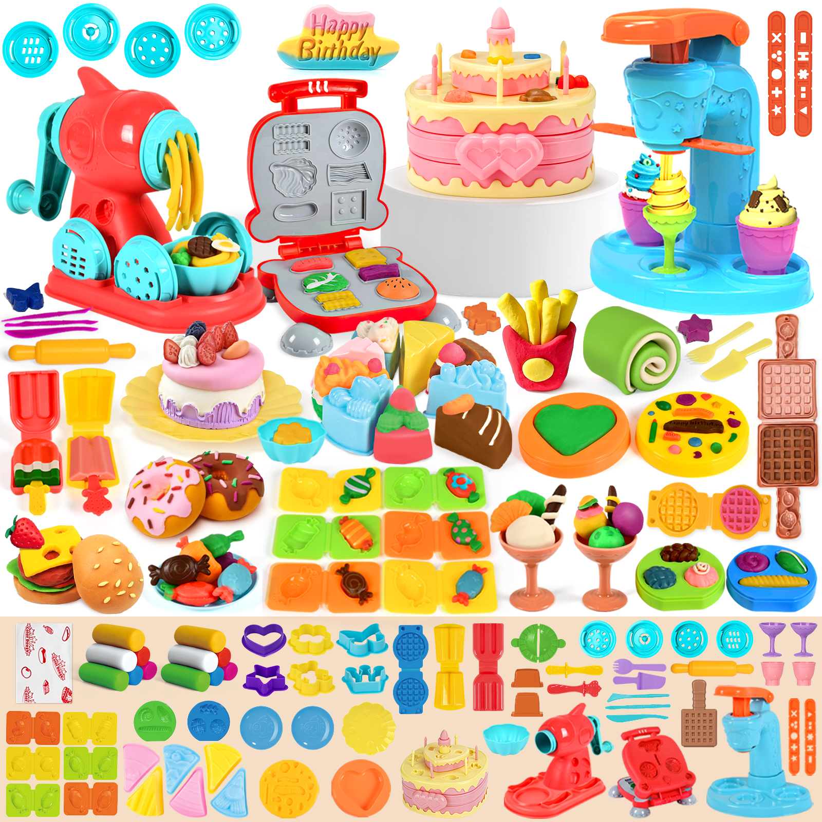 SOCBTNSO 4 in 1 Dough Sets 70 PCS for Kids Ages 4-8, Dough Tools Kit with Ice Cream Noodle Hamburger Cake Maker Machine, Kitchen Creations Art Crafts Food Play Toys for Boys Girls Ages 3+