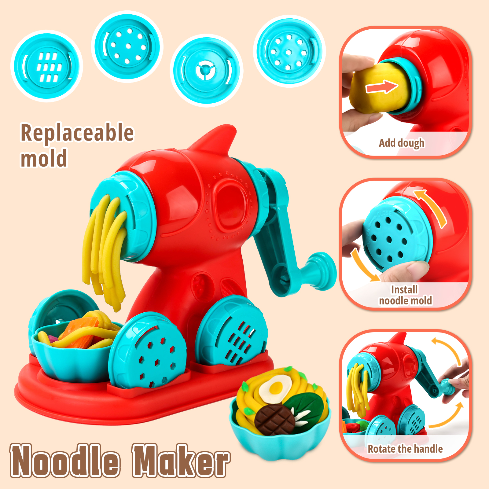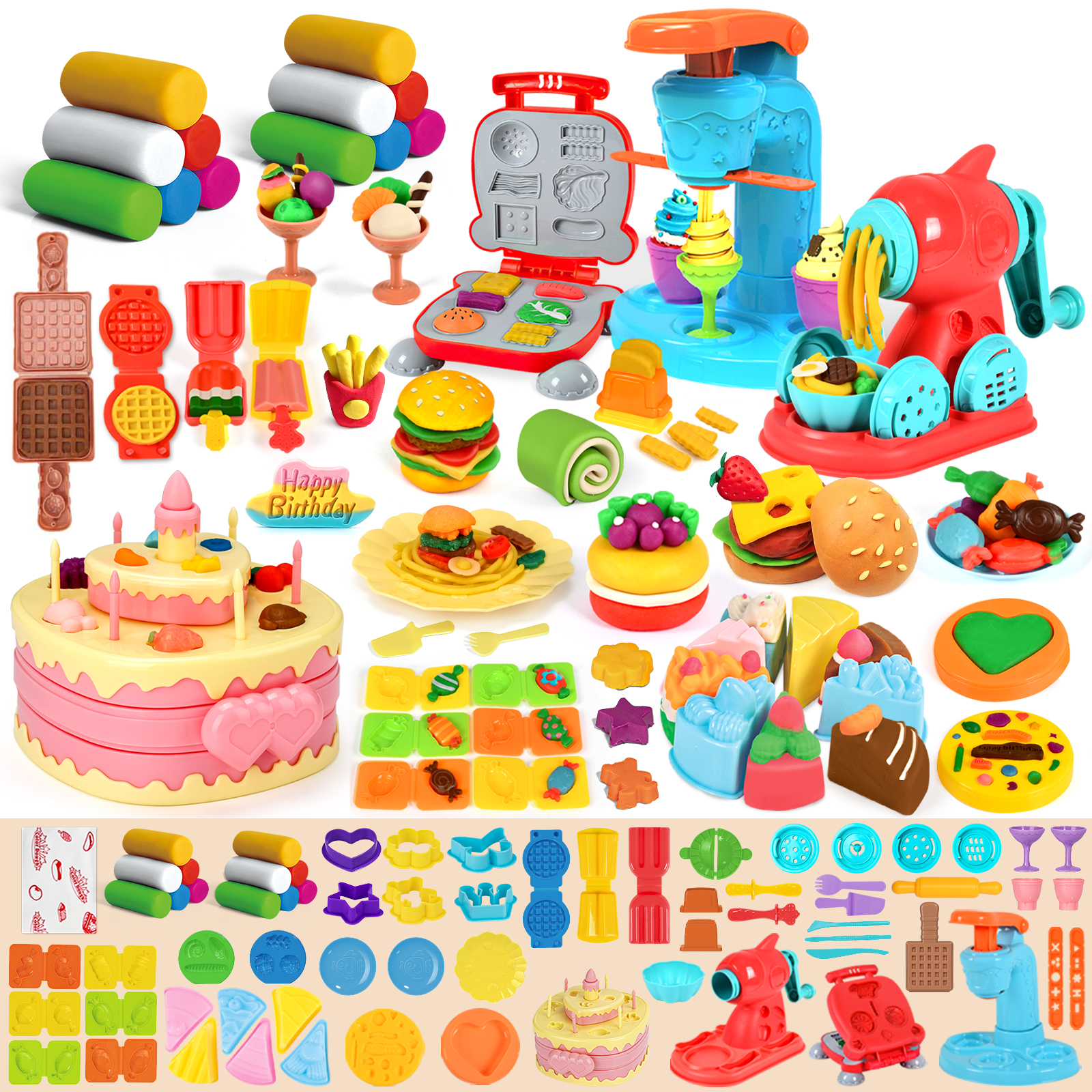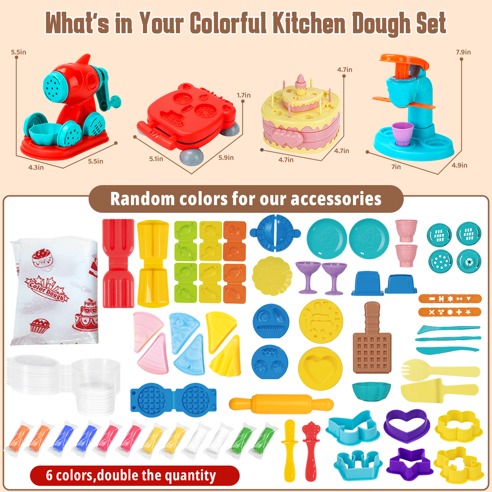 - Accessory Variety: Includes 70 PCS, featuring an ice cream set, cake, noodle & burger maker machine, a wide array of accessories & 12 dough in random colors. Little chefs can unleash their imagination and manage their own unique restaurant