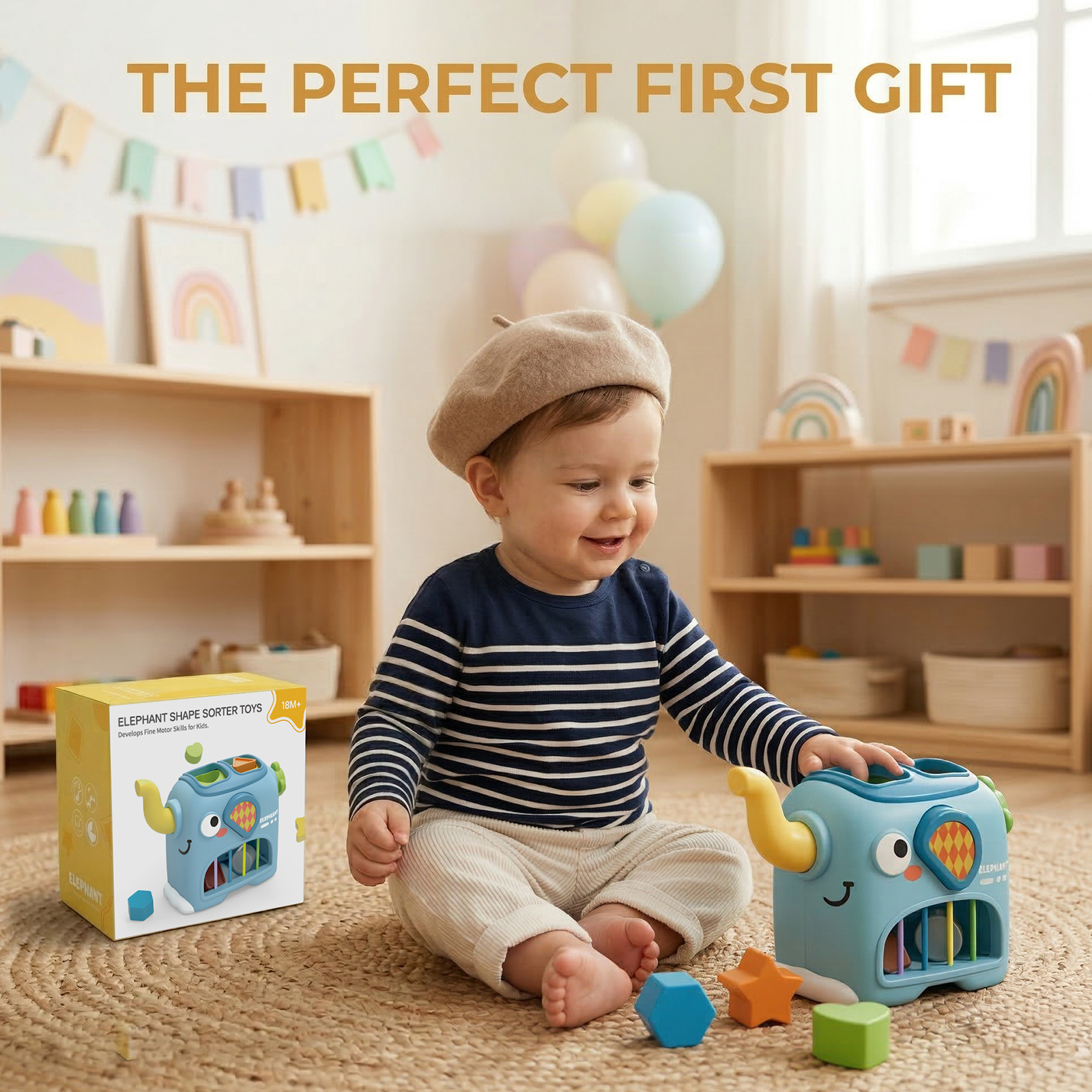 - Ideal Early Education Gift: With its cute & appealing elephant design, this shape sorting toy quickly captures babies’ attention. The brightly colored, simple-shaped blocks won’t easily cause visual fatigue, making it an ideal choice for home early education & parent-child interaction